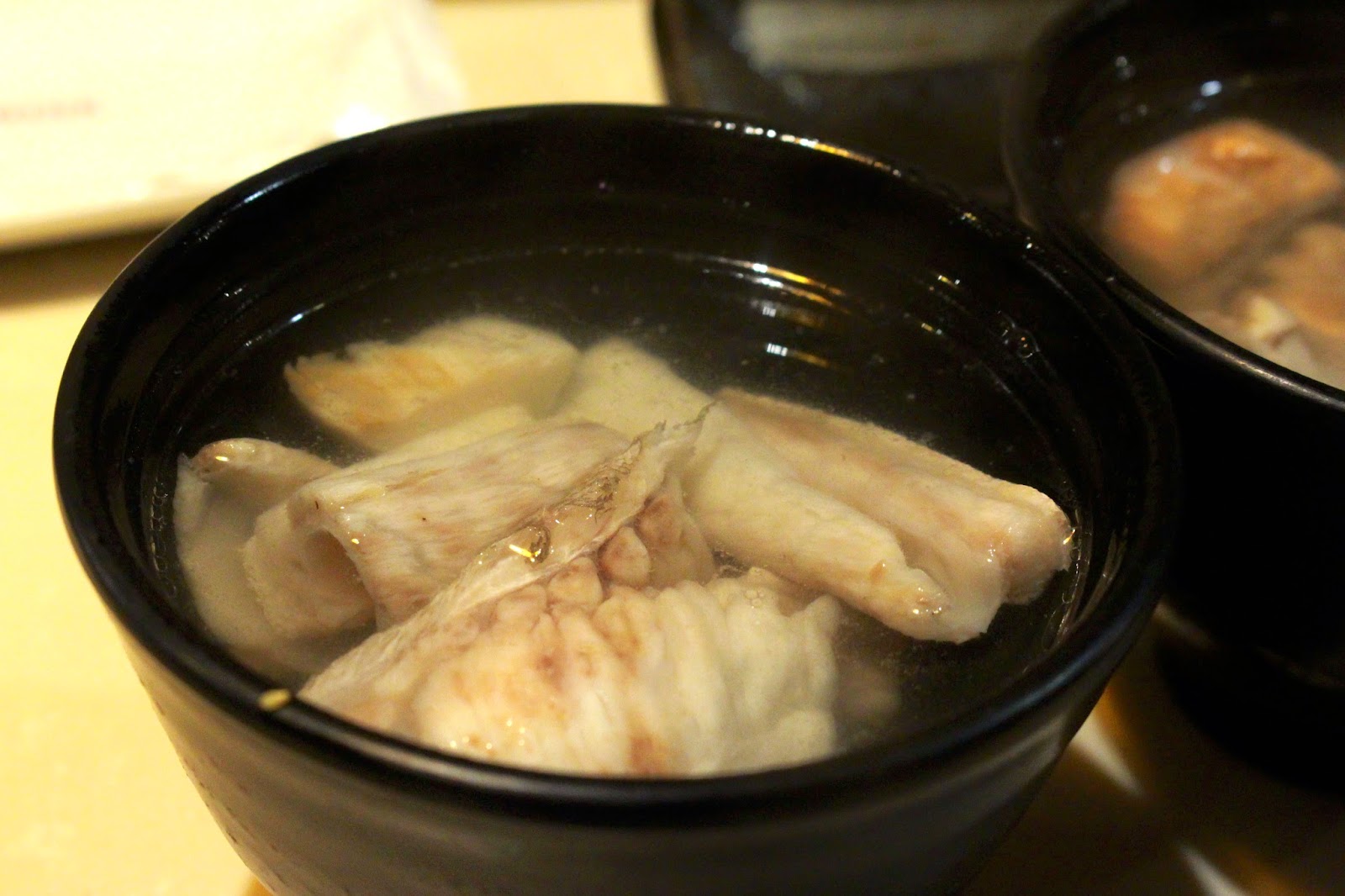 鮮魚湯是以生魚片切剩的骨頭和肉加入薑熬煮而成