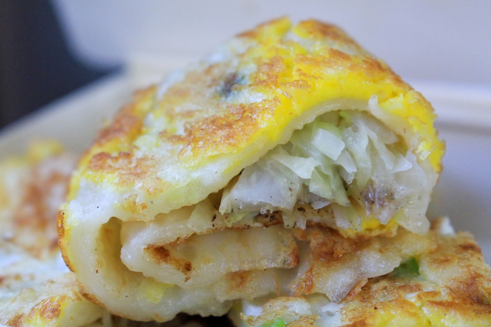 吃過九層塔蛋餅之後會覺得高麗菜蛋餅味道清淡些許